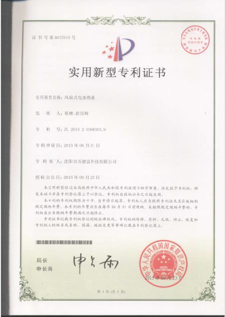 實(shí)用新型:風(fēng)扇式電加熱器專利